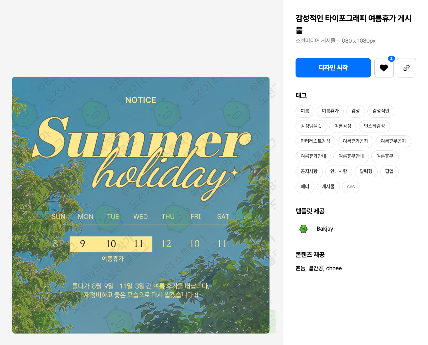 여름컨셉이지만 텍스트+사진을 수정하시면 계절 상관없이 범용적으로 사용가능합니다 :)
