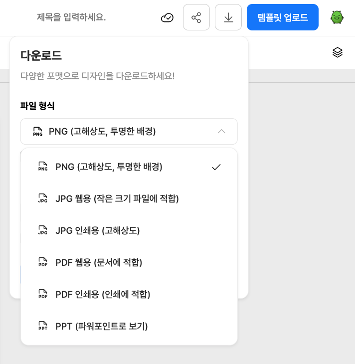 편집기로 이동하게 되고, 우측 상단의 템플릿 업로드 옆
