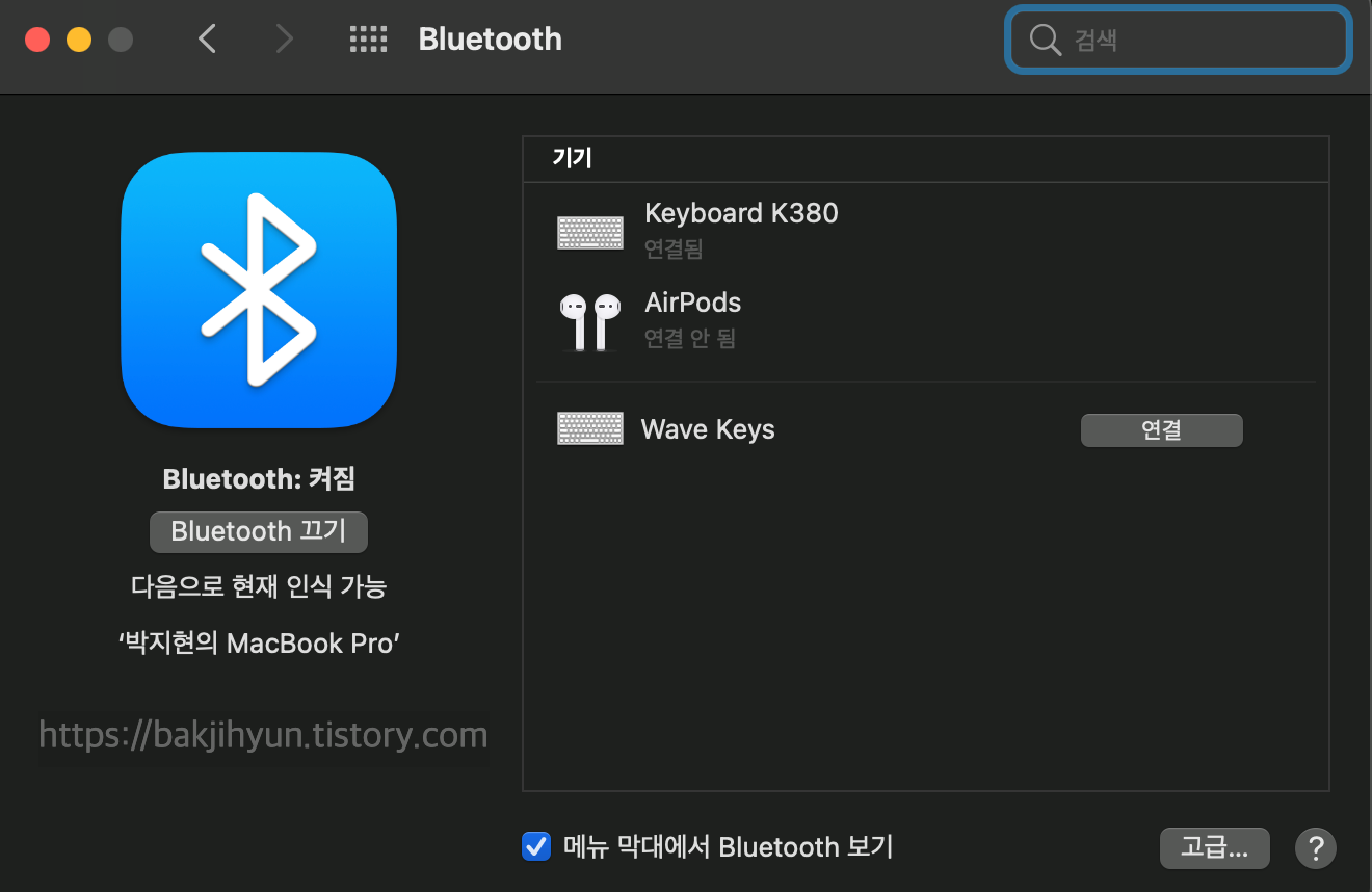 - 맥북/아이패드 → 블루투스 설정 → “Wave Keys” 선택
