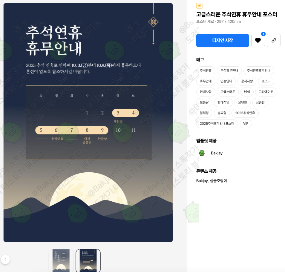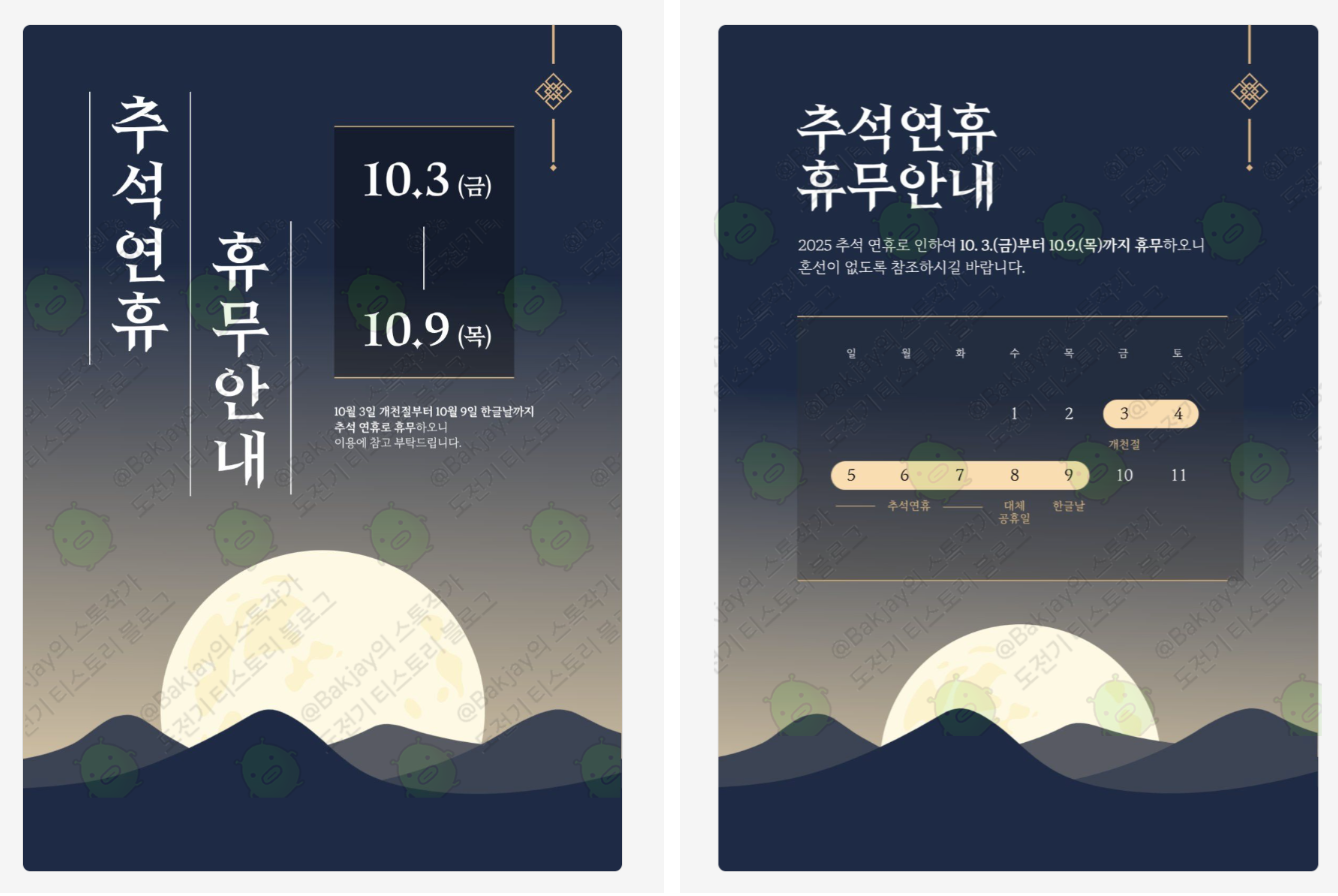 오늘은 고급스러운 추석 휴무 안내 포스터 2종을 소개해 드리겠습니다 🎉