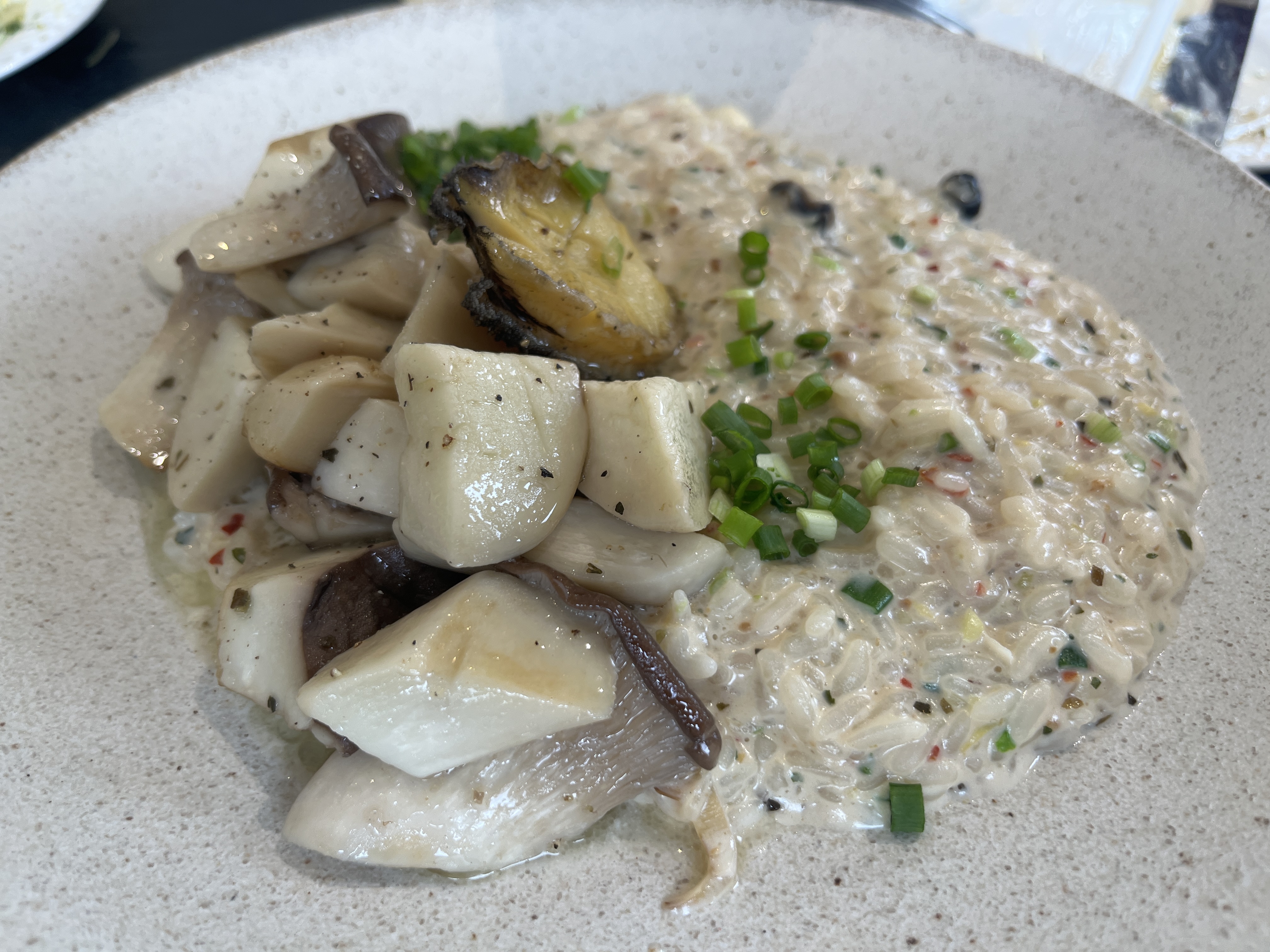 된장의 풍미가 은은하게 스며든 리조또로, 일반 크림 리조또보다 훨씬 깔끔했습니다.