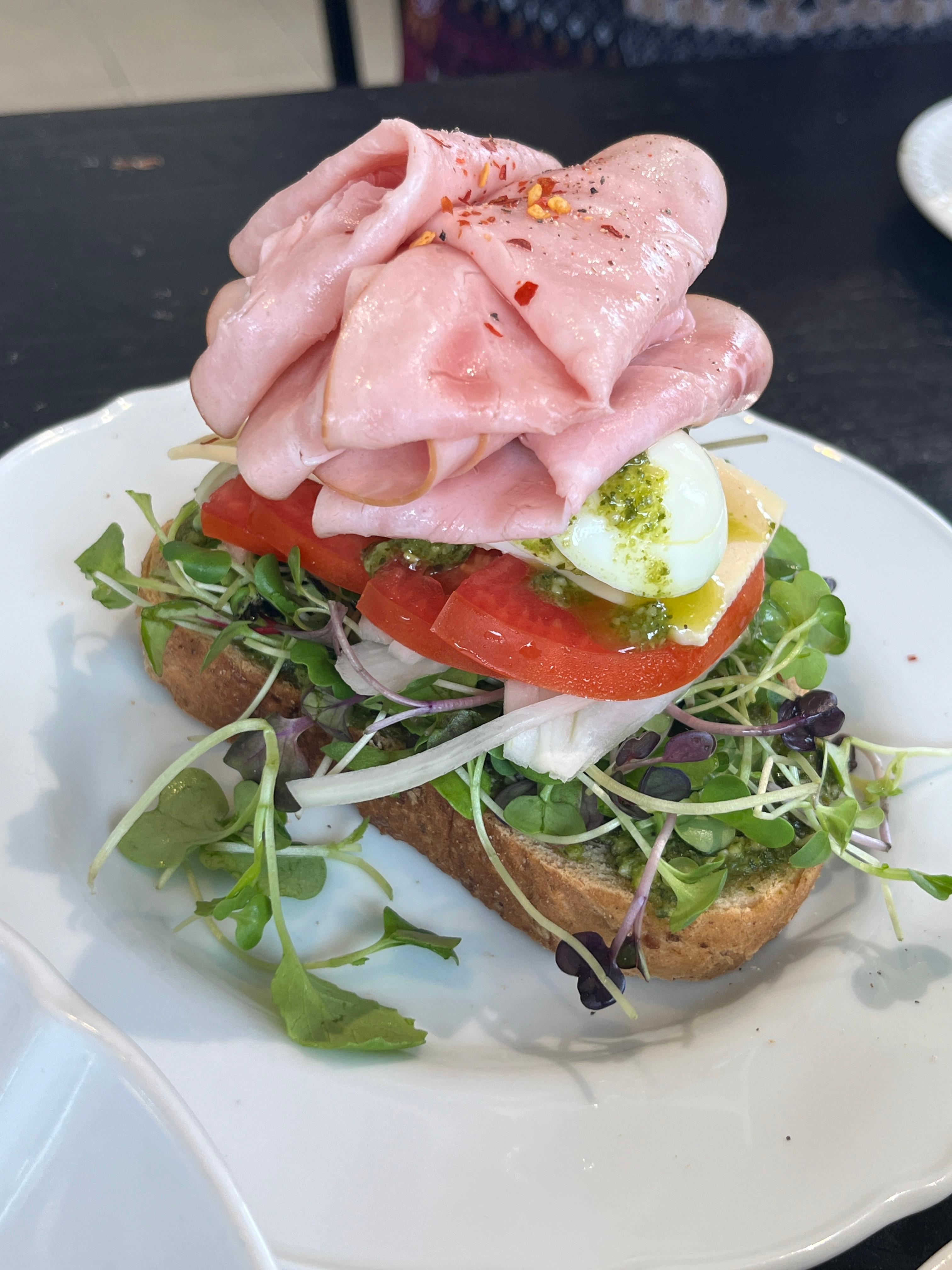 칼로 썰어 먹는 오픈 샌드위치라 접시가 조금 지저분해질 수 있는 점은 참고하세요!