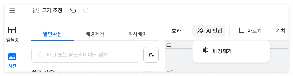 툴디 편집기 상단의 AI 기능을 이용해 배경을 제거하면