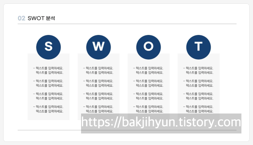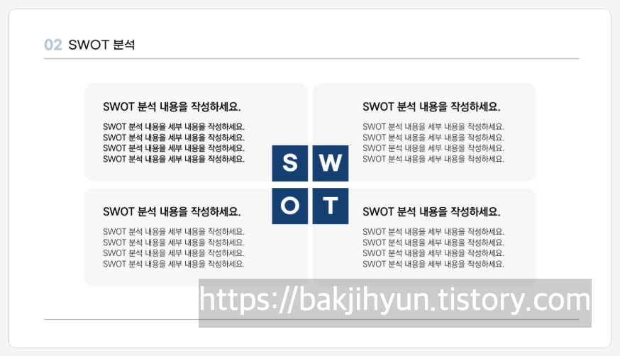 4분할 비교형 구조로, SWOT외에도