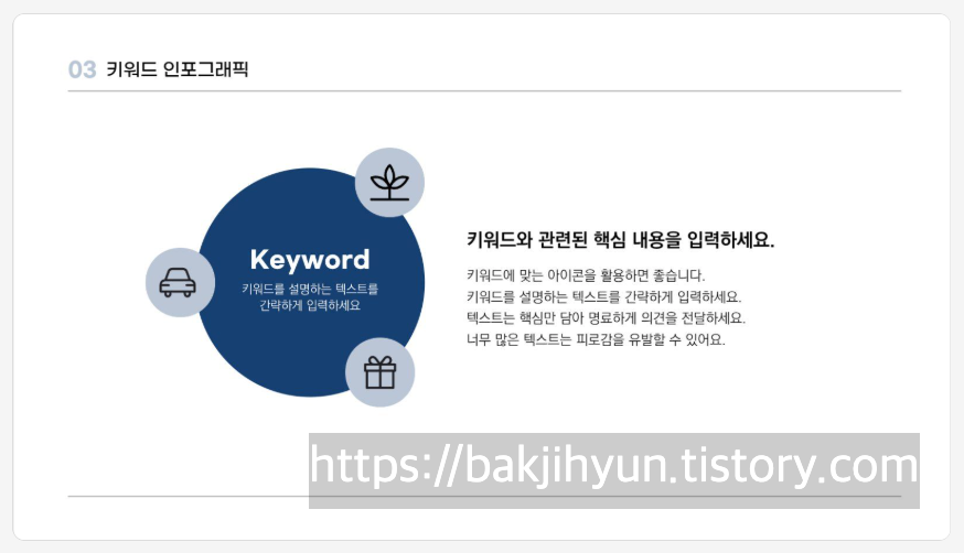 아이콘을 활용하면 시각적으로 구조화된 느낌을 줄 수 있습니다.