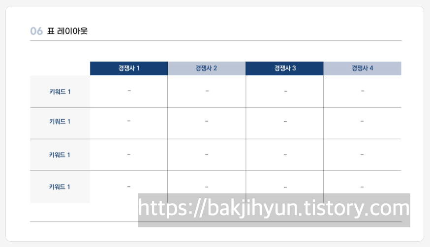 비교, 일정, 예산 등 많은 데이터를 한 페이지에 보기 좋게 정리할 때 적합해요.