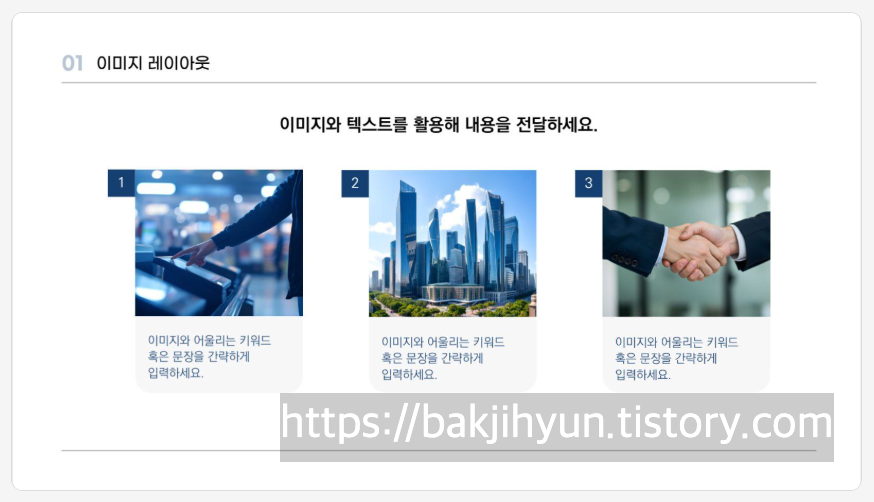 이미지와 텍스트를 조합해서 사례, 과정, 비교자룔르 시각화할 때 적합합니다.