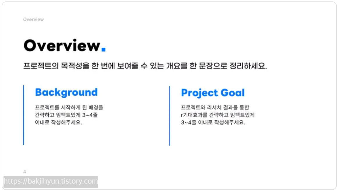 공모전이나 수업 발표에서 가장 기본이 되는 구조예요.